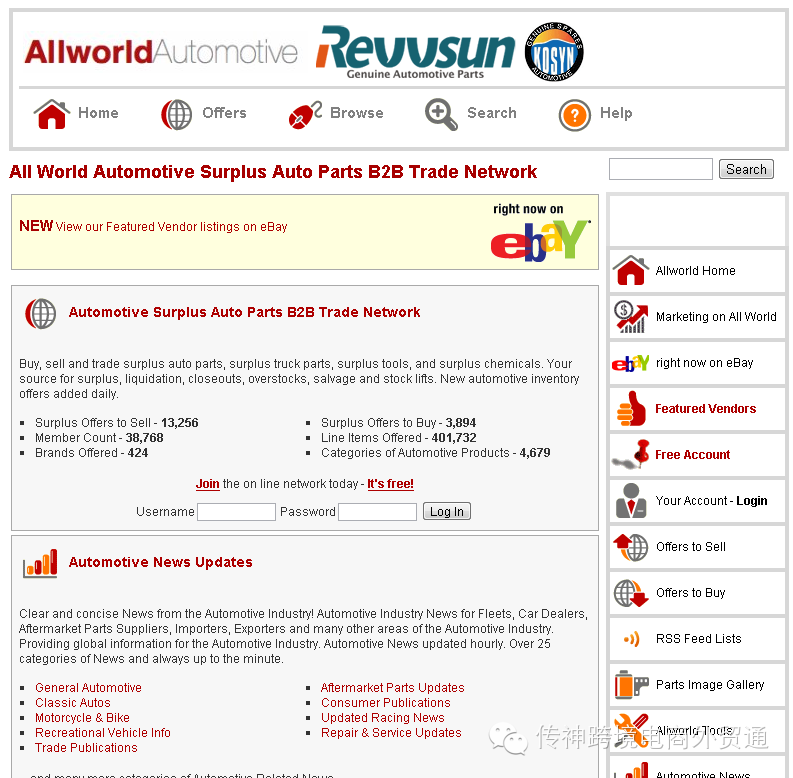 Allworldautomotive创建于1998年,是美国本土的专注汽车配件行业的B2B平台,是一个将买家和汽车行业紧密联系在一起的高效渠道,其目标是以最准确的汽车库存数据来满足会员的需求,以达到购买和销售汽车零部件及相关产品和通过该平台建立业务关系的共同目的。