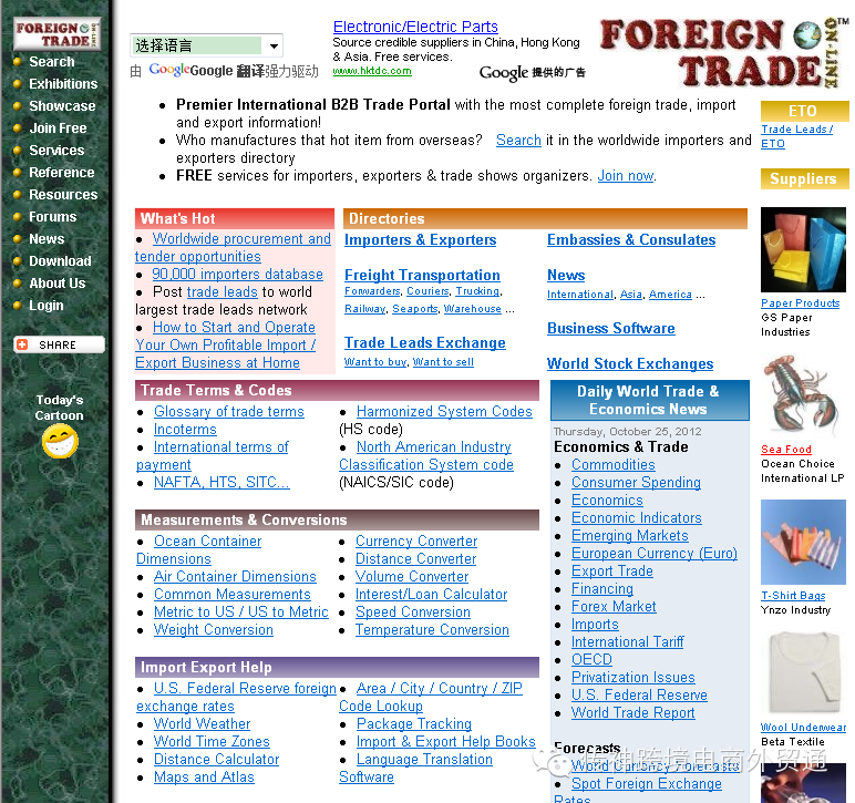 FOREIGN TRADE ON-LINE™ 是全球领先的B2B私营门户网站,创建于1999年,它为世界各地的公司提供商业机会,拓展业务。目前,它在谷歌和雅虎B2B贸易网站排名均在前10位。