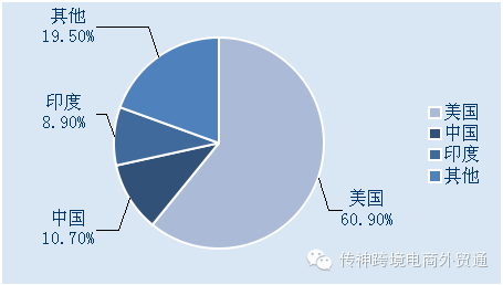 美国,中国,印度为主要访问国家。访问分布图如下: