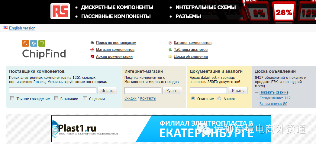 ChipFind在alexa排名在13690左右,网站每天有超过10000名俄罗斯用户,他们会在我们网站上浏览约10万个页面。约5000名用户每天使用我们的搜索引擎来寻找好的元器件供应商。有3000名用户每天都会查看我们的IC留言板(MessageBoard),它在俄罗斯非常流行。我们的合作伙伴有ADI公司,德州仪器,三星,VISHAY,Farnell集团,DigiKey,贸泽等...您每天都可以在我们网站上看到他们的广告。